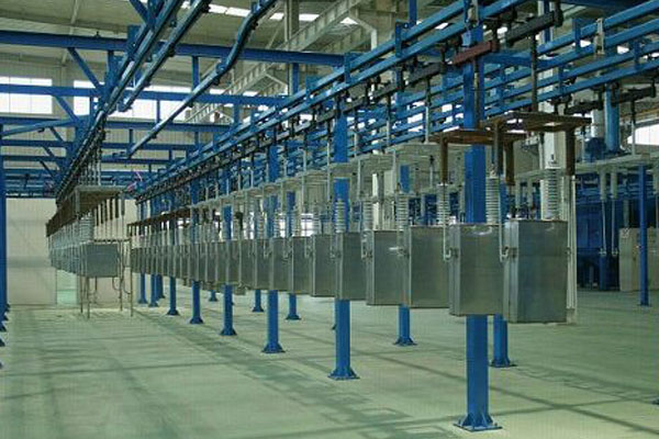 (7)懸掛鏈輸送線可以使工件連續(xù)不斷地運經(jīng)高溫烘道、有毒氣體區(qū)、噴粉室、冷凍區(qū)等人工不適應(yīng)的區(qū)域,完成人工難以操作的生產(chǎn)工序,達到改善工人勞動條件、確保安全的目的;